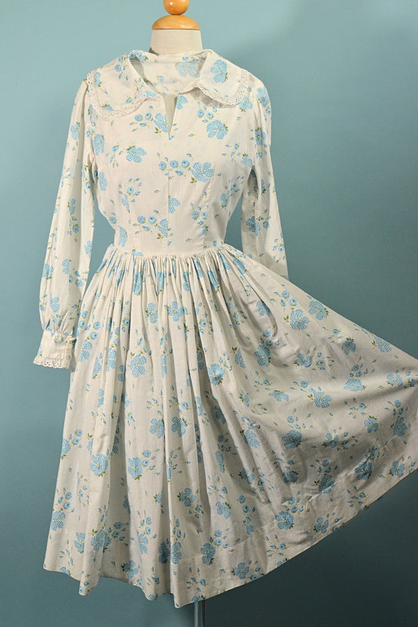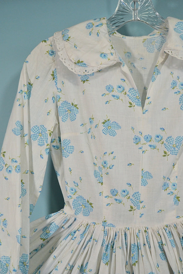 SOLD Vintage 50s Girls Floral Print Dress, Cottagecore Pre-Teen Junior Dress