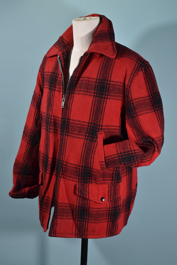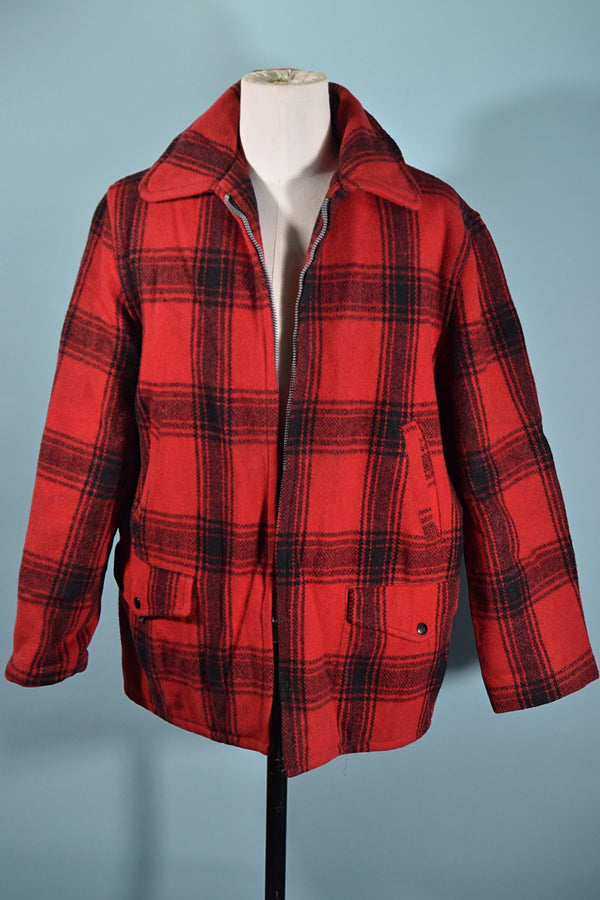 SOLD Vintage 50s Red Wool Plaid Mens Hunting Jacket, Foremost JC Penny XL
