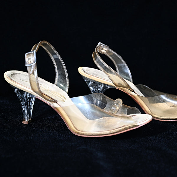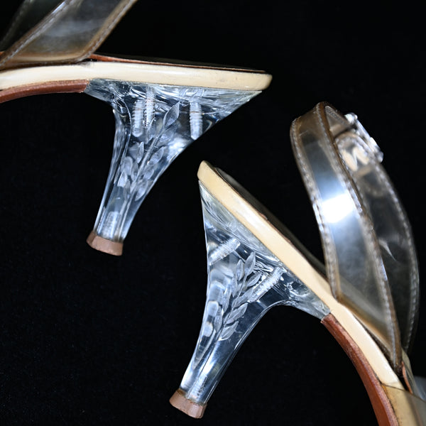 SOLD Vintage 50s Clear Vinyl & Carved Lucite Heels by Sbicca