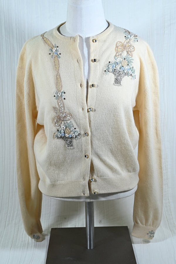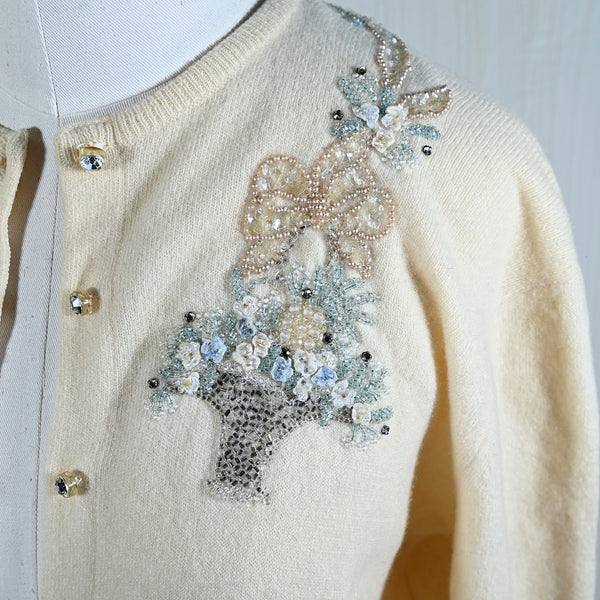 SOLD Vintage 50s Beaded Cardigan Sweater, Henri Bendel