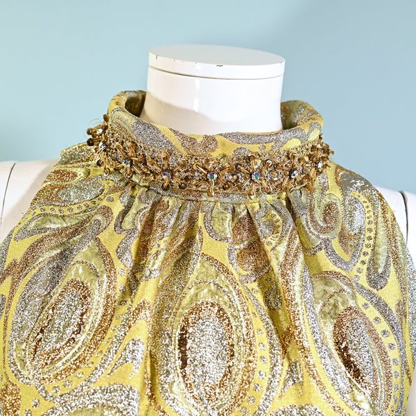SOLD Vintage 60s Silver/Gold Sparkle Palazzo Jumpsuit, Beaded Neck Eveningwear by Ken Originals M