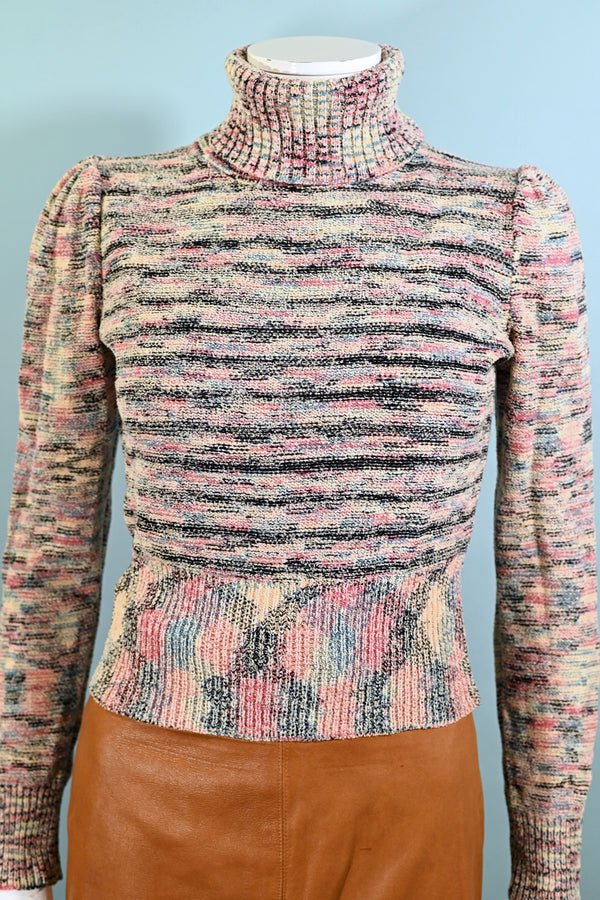 SOLD Vintage 60s Organically Grown Multi-Colored Cropped Turtleneck Sweater S