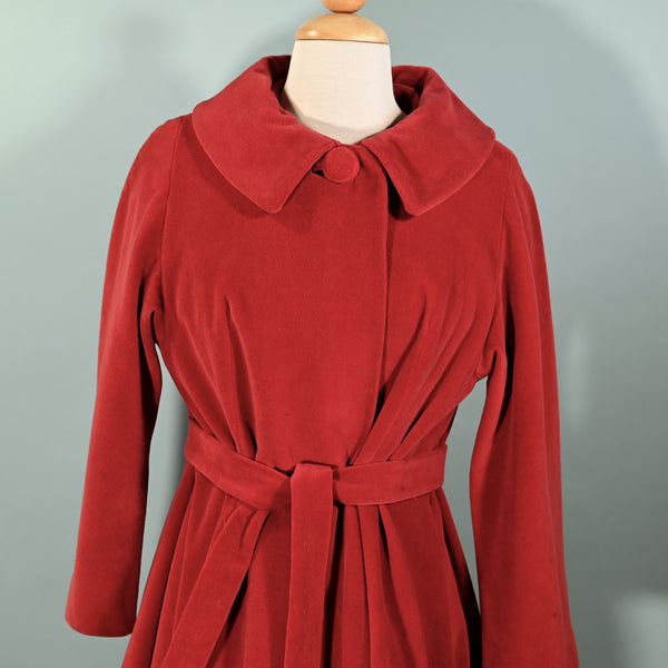 SOLD Vintage 60s Red Velvet Swing/Belted Overcoat S/M