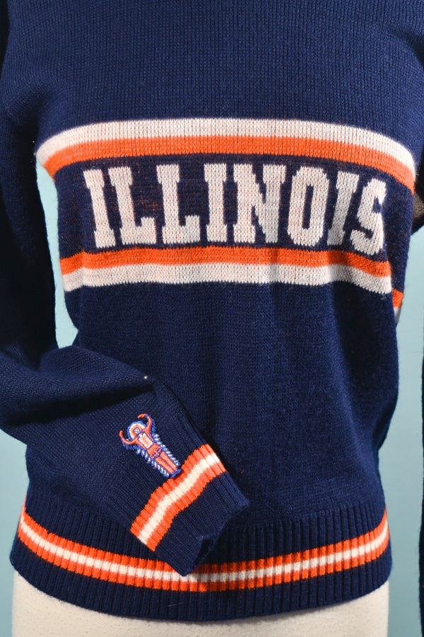 SOLD Vintage 60s/70s Illinois Sweater, Sport Fan 'Cheer' Sweater M