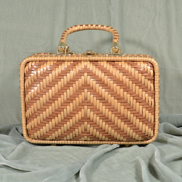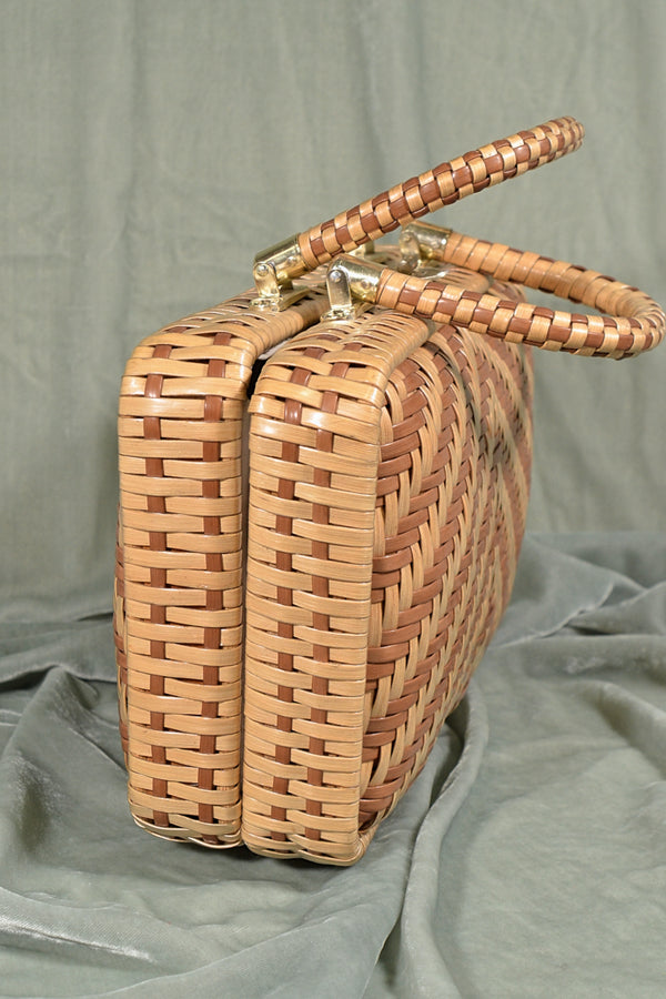 SOLD Vintage 60s Two Tone Wicker Handbag, Top Handle Bag by Dorette