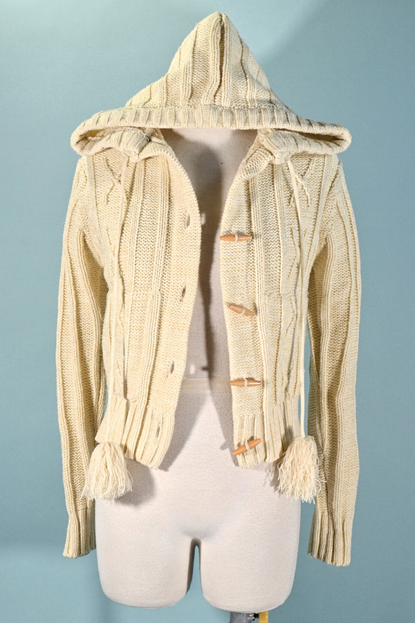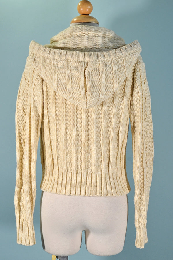 SOLD Vintage 60s/70s Cropped Cream Acrylic Sweater, Hood+ Pockets S