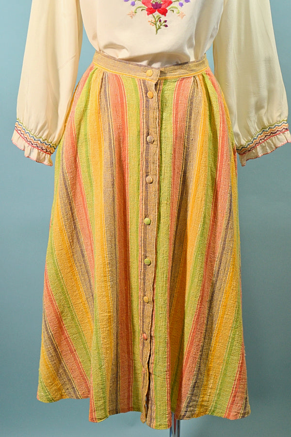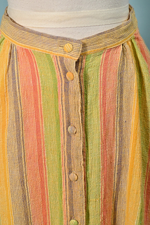 SOLD Vintage 60s/70s Gauze Striped A Line Skirt, Boho Hippie Skirt w/Pockets S