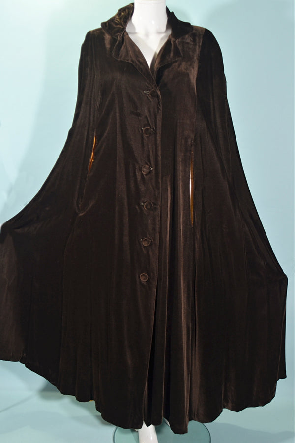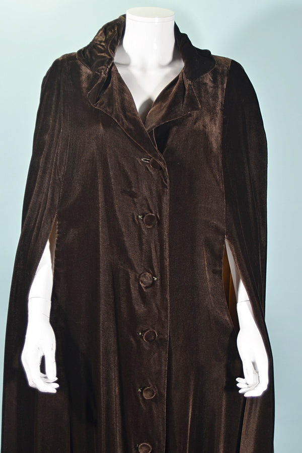 SOLD Vintage 60s/70s Long Brown Velvet Cape, Maxi Opera Length Cape
