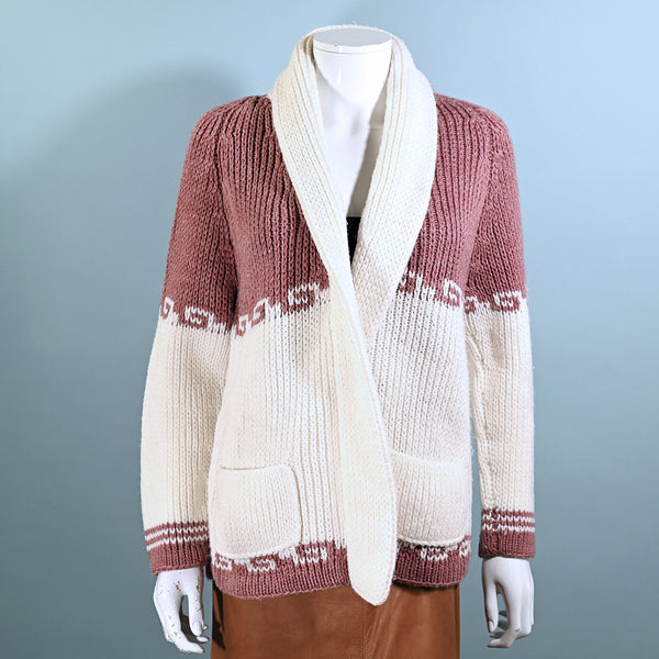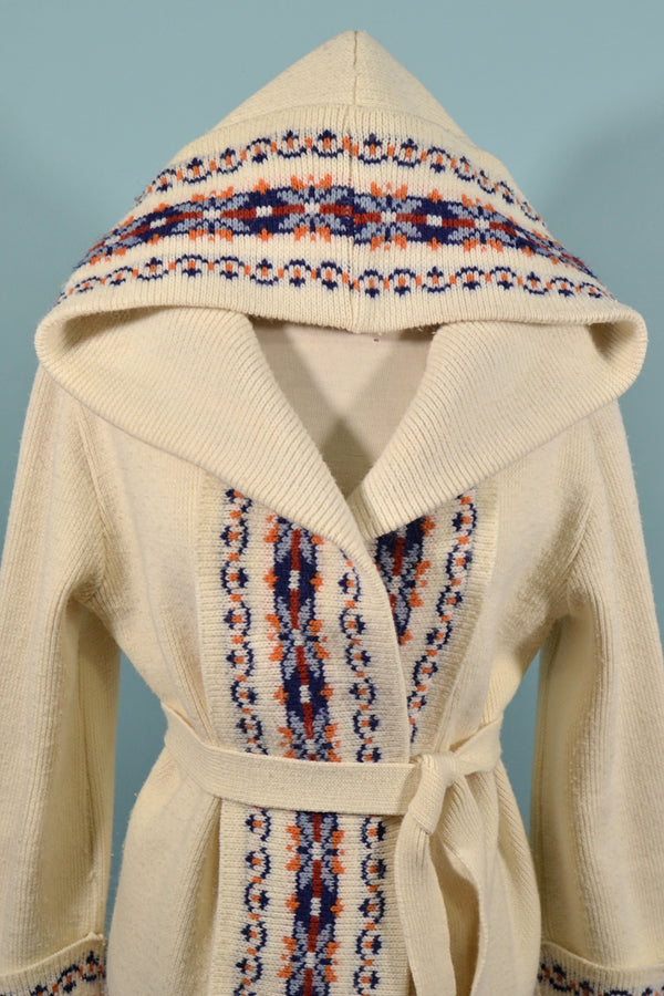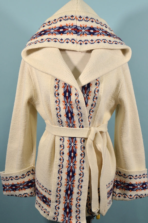 SOLD Vintage 70s Hooded Cardigan with Nordic Scandinavian Trim