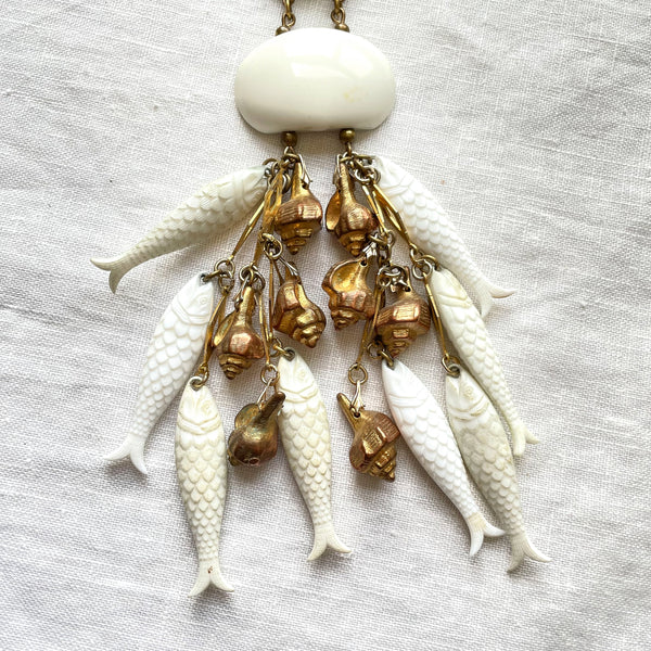SOLD Vintage 70s Fish Tassel Statement Necklace, Sea/Ocean Theme Necklace