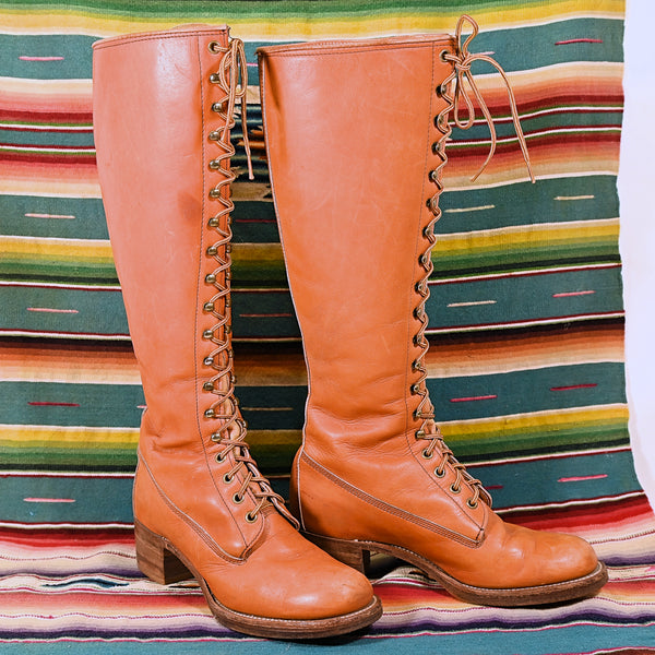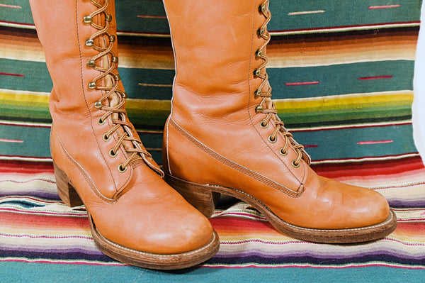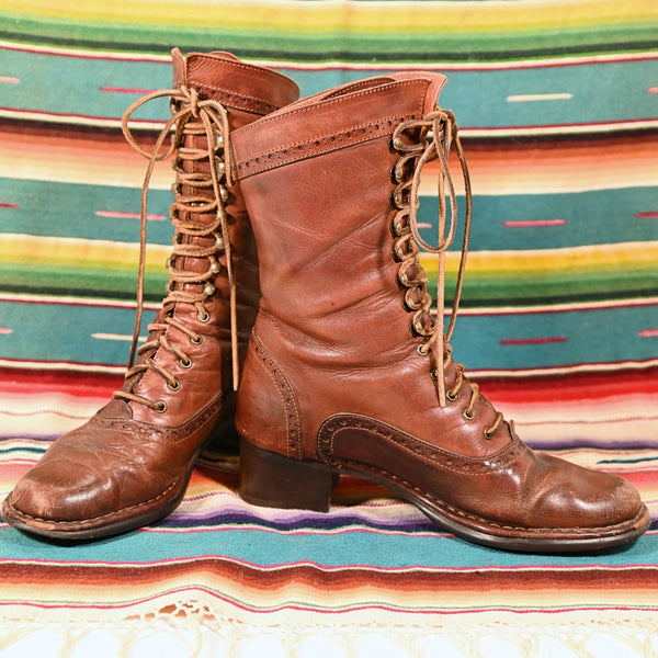 SOLD Vintage 70s Frye Lace Up Boots, Granny Packer Hippie Boots, Frye Black Label