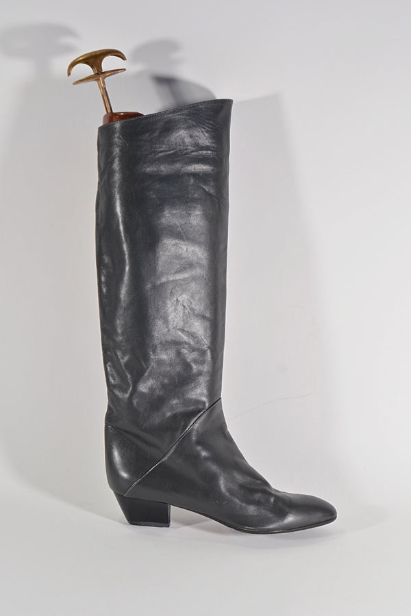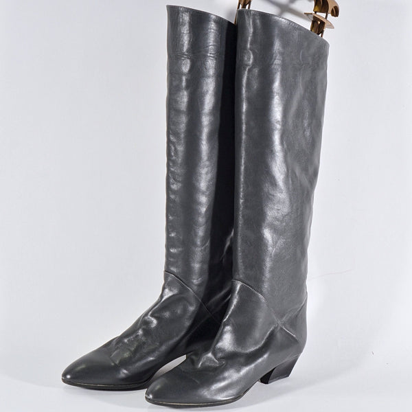 SOLD Vintage 70s Grey Leather Boots, Unworn Deadstock, Slouchy Boots 9