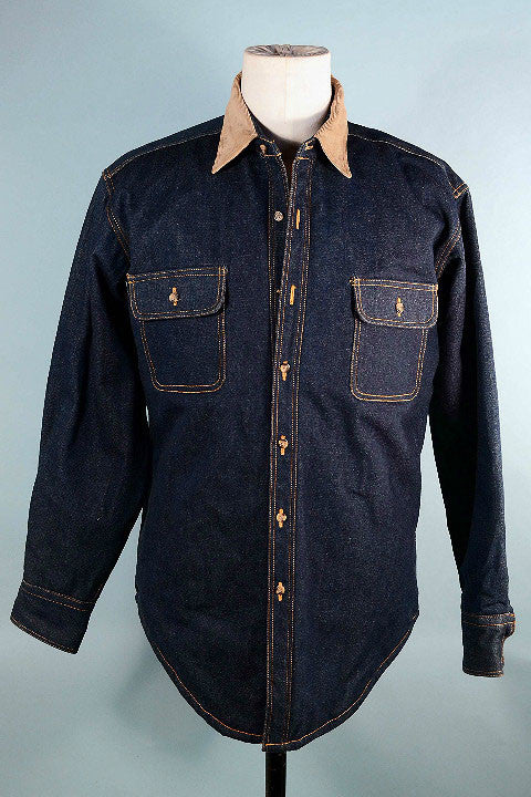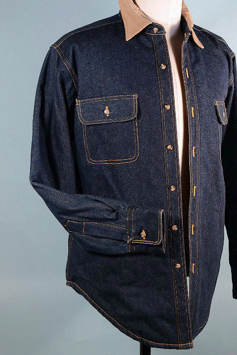 SOLD Vintage 70s Denim Shirt + Corduroy Collar Quilted Lining Shirt L