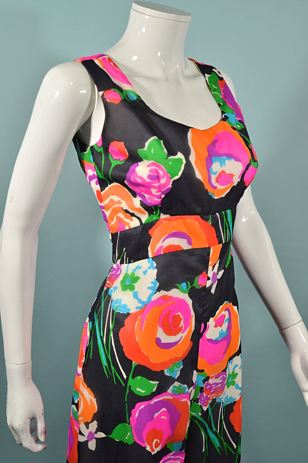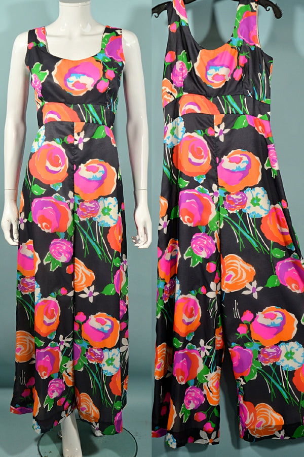 SOLD Vintage 70s Hawaiian Jumpsuit Palazzo Pants, Maxi Dress by Malia Honolulu M