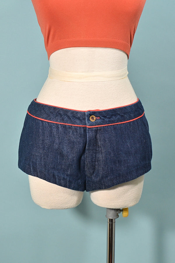 SOLD Vintage 70s Denim Hip Hugger Short Shorts, Hot Pants w/Panties, JC Penny M