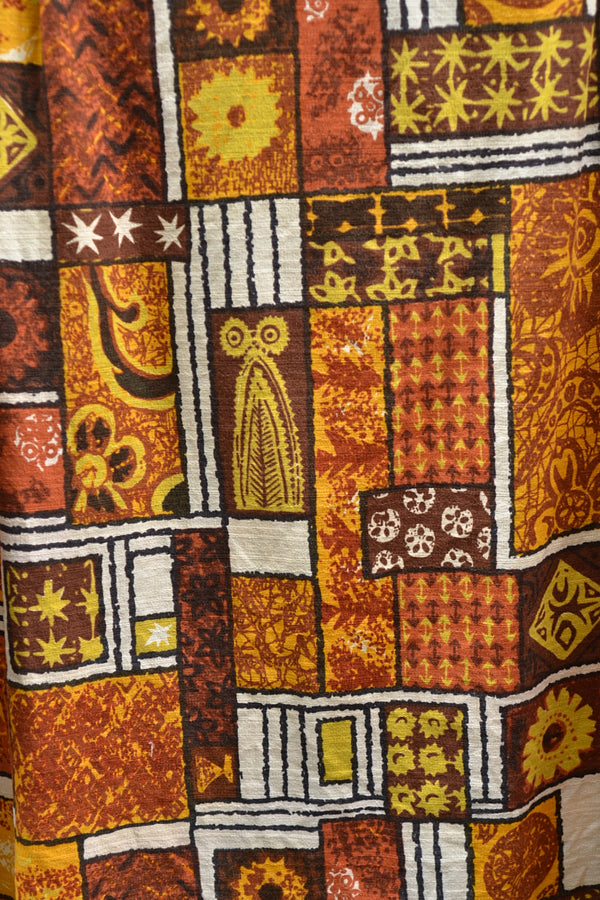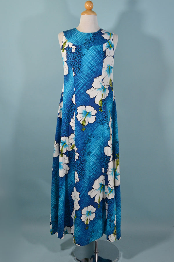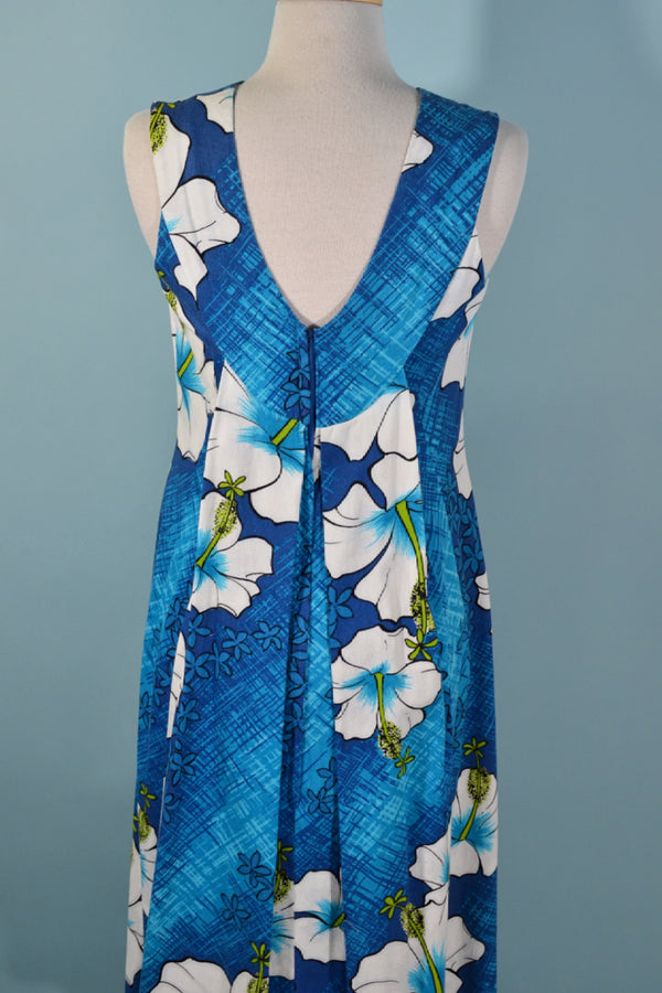 SOLD Vintage 70s 'Pennys Hawaii' Blue & White Polynesian Print Dress SZ 8