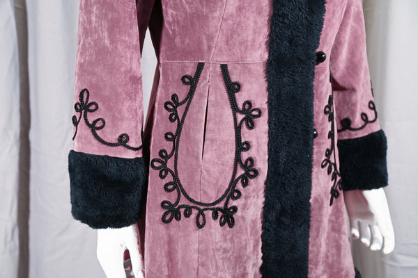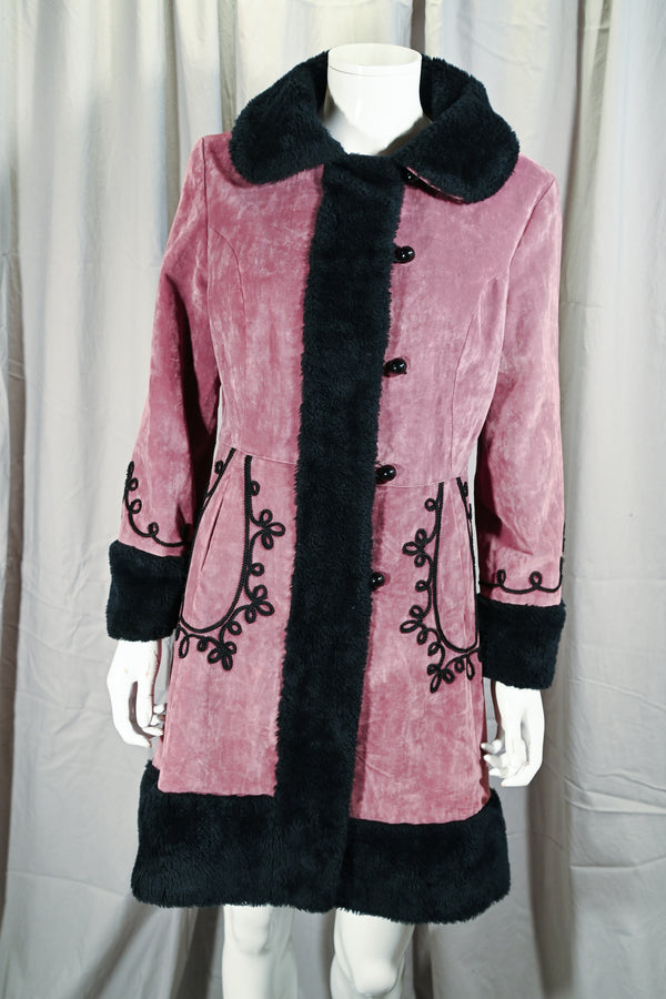 SOLD Vintage 60s/70s Princess Coat, Pink Velvet Faux Fur and Cord Trim