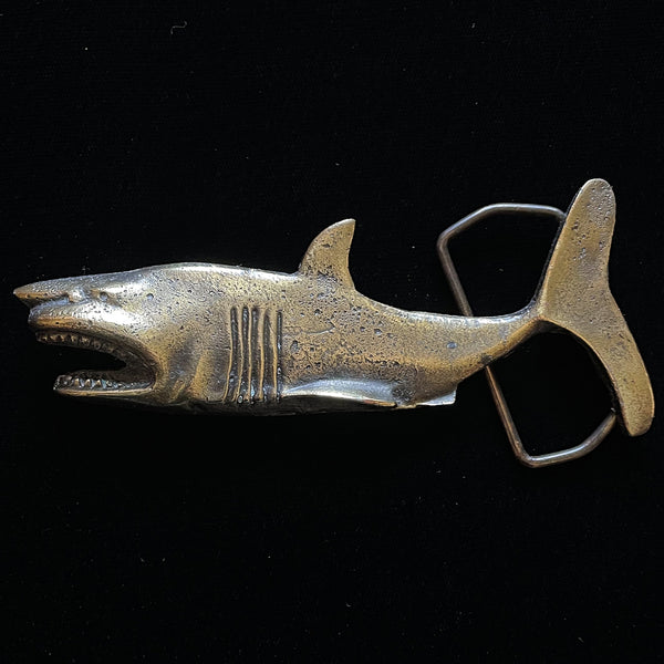 SOLD Vintage 70s Brass Shark Belt Buckle