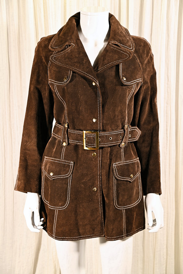 SOLD Vintage 70s Brown Suede Belted Jacket, Mod Mini Coat, The Tannery S/M