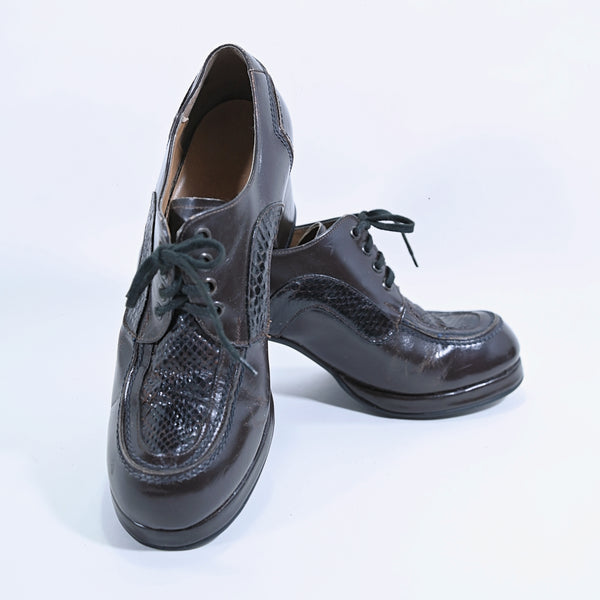 SOLD Vintage 70s Mens Brown Leather/Snake Platform Disco Shoes SZ 9-9.5