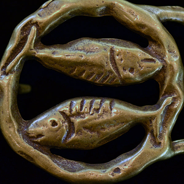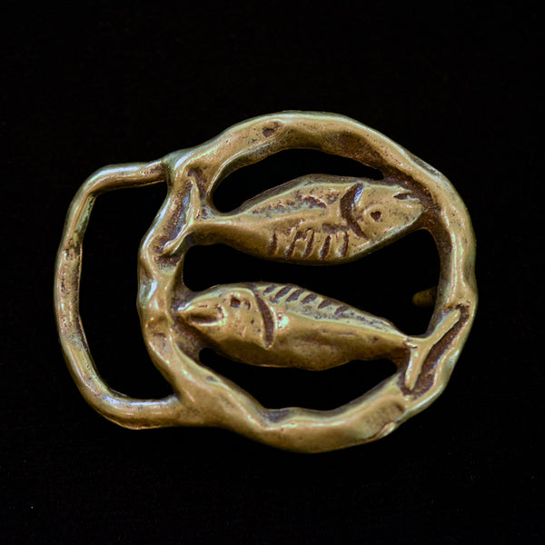SOLD Vintage 70s Pisces Zodiac Solid Brass Belt Buckle