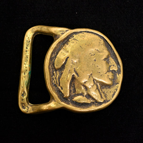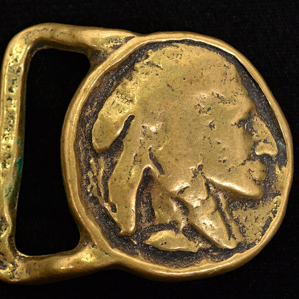 SOLD Vintage 70s Solid Brass Native American Indian Belt Buckle, BTS