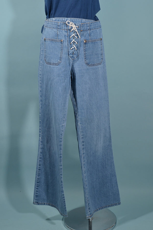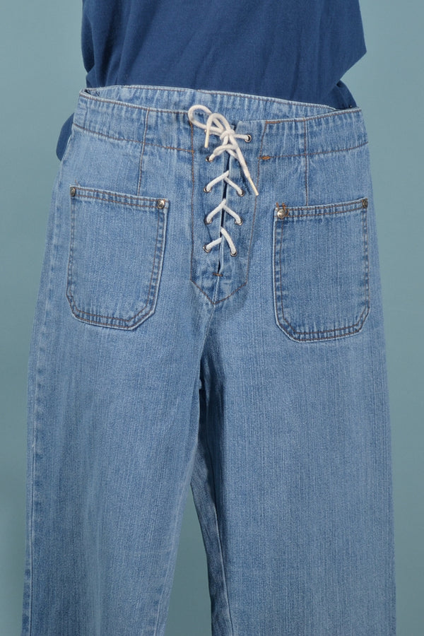 SOLD Vintage 70s Lace Up Denim Jeans by Rainbow Jean SZ 5