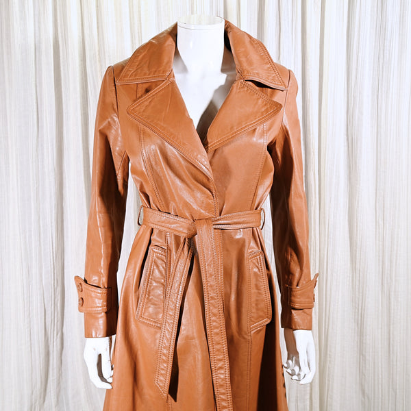 SOLD Vintage 70s Leather Trench Coat, 1970s Leather Midi Coat, Jet Set of Calif S