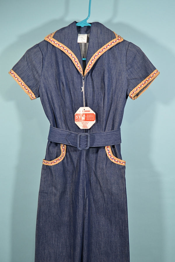 SOLD Vintage 70s Unworn Denim Jumpsuit Belt, Junior Petite XXS