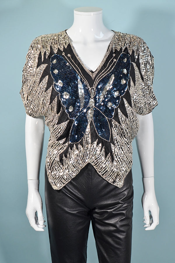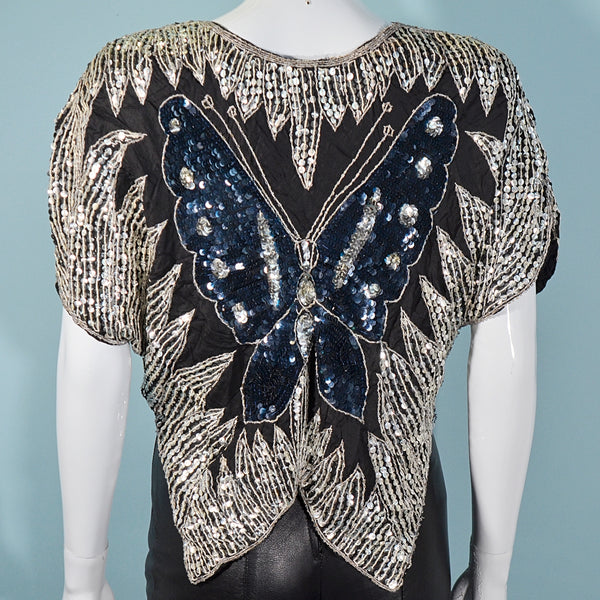 SOLD Vintage 70s Sequin Butterfly Top, Boho Disco Art Deco