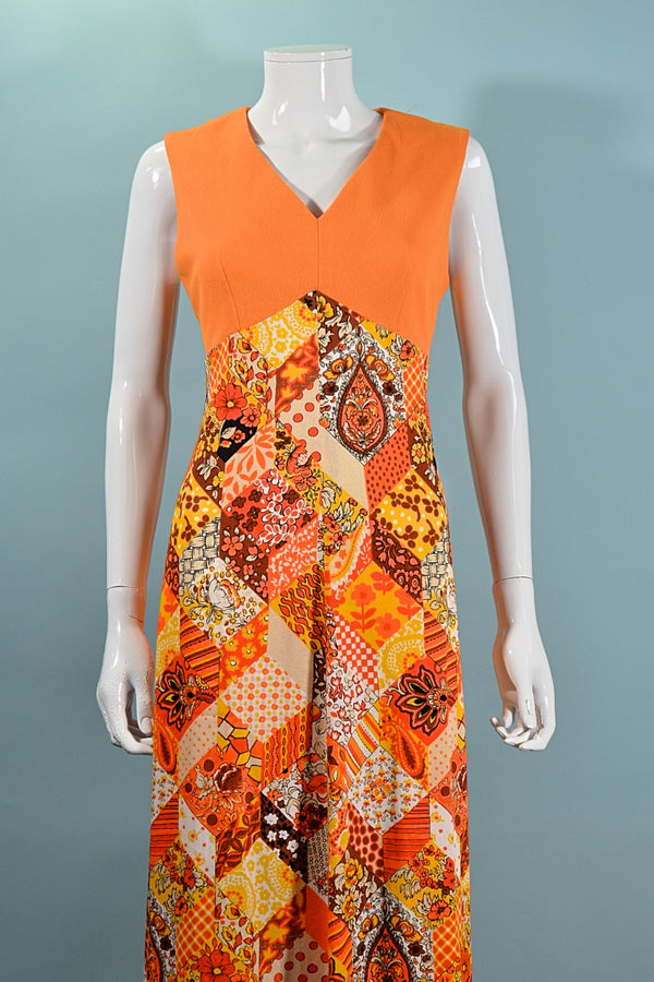 SOLD Vintage 70s Patchwork Maxi Dress, Cottagecore Farmcore Long Dress