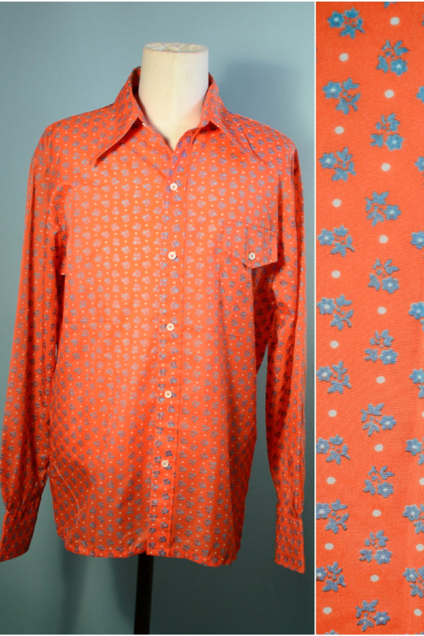 SOLD Vintage 70s SKYR Orange/Blue Floral Mod Disco Shirt XL
