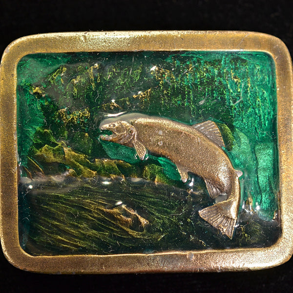 SOLD Vintage 70s Trinity Solid Brass Jumping Dolphin Belt Buckle