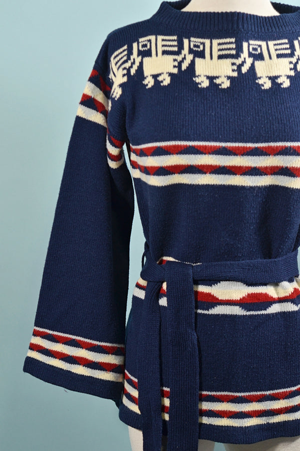 SOLD Vintage 70s Southwestern Mayan/Aztec Ethnic Print Tunic Sweater M