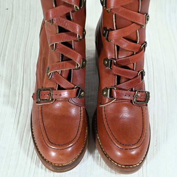 SOLD Vintage 70s Lace Up Leather Boots, Zodiac Granny Campus Packer Boots Unworn in Original Box Marked 6M