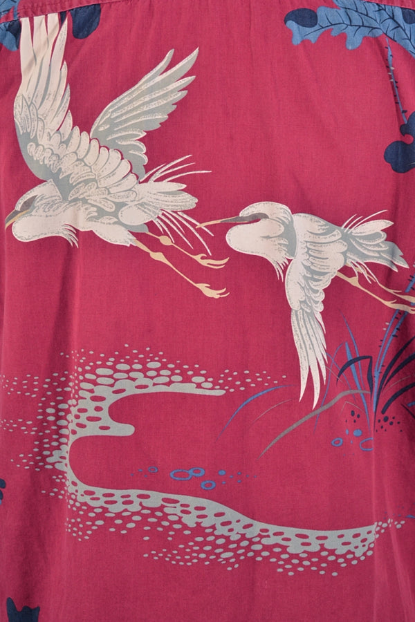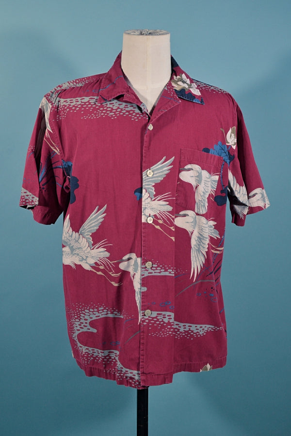 Union Bay Burgundy Crane Asian Hawaiian Aloha Camp Shirt M