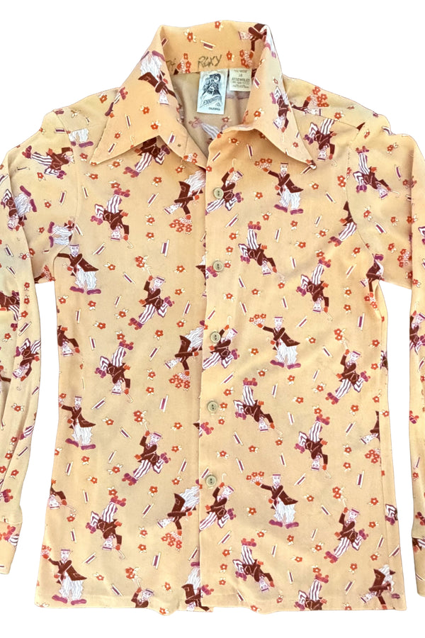 Vintage 70s Boys Disco Shirt, Kennington Calif, Novelty Print SZ 18
