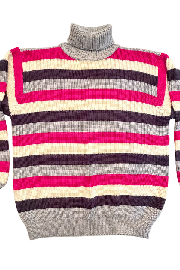 Vintage Wool Striped Boys Winter Sweater, Turtleneck Sweater SZ 16