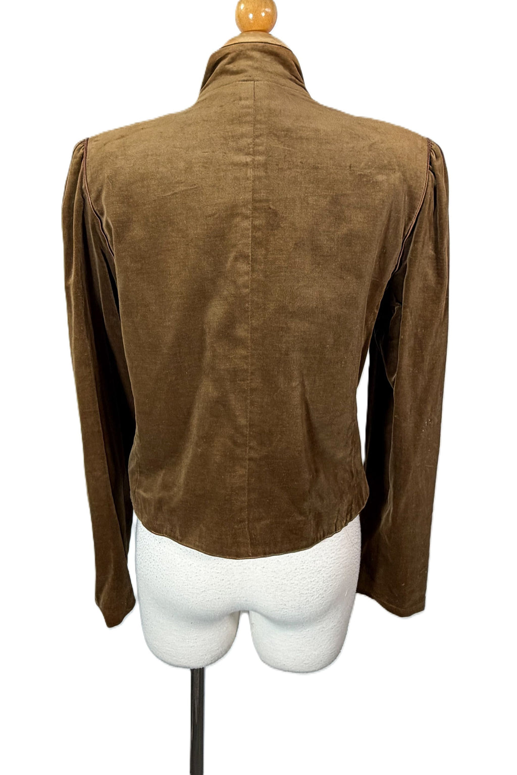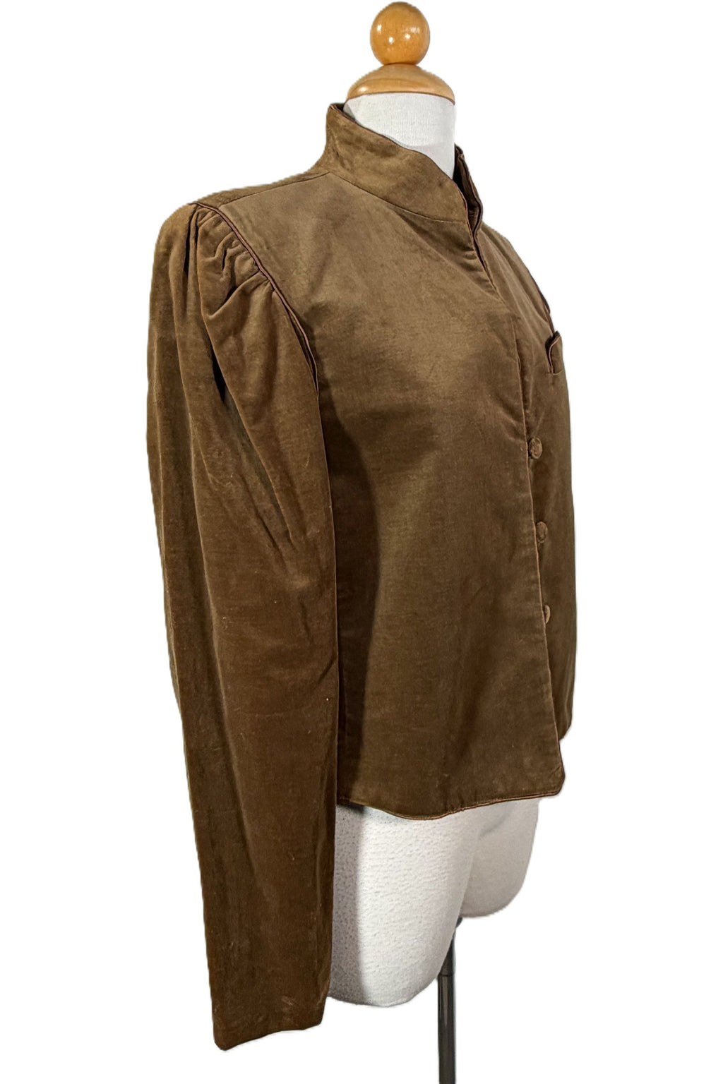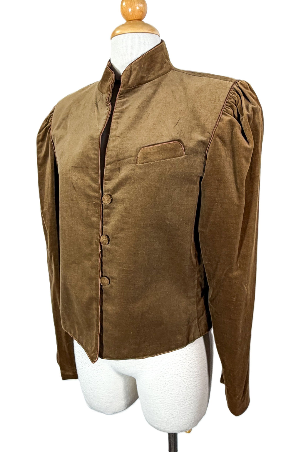 Vintage 80s brown velvet jacket with puff sleeves.