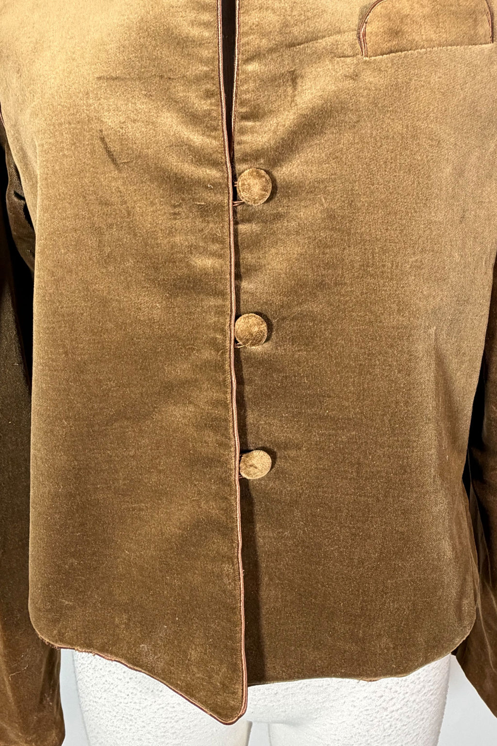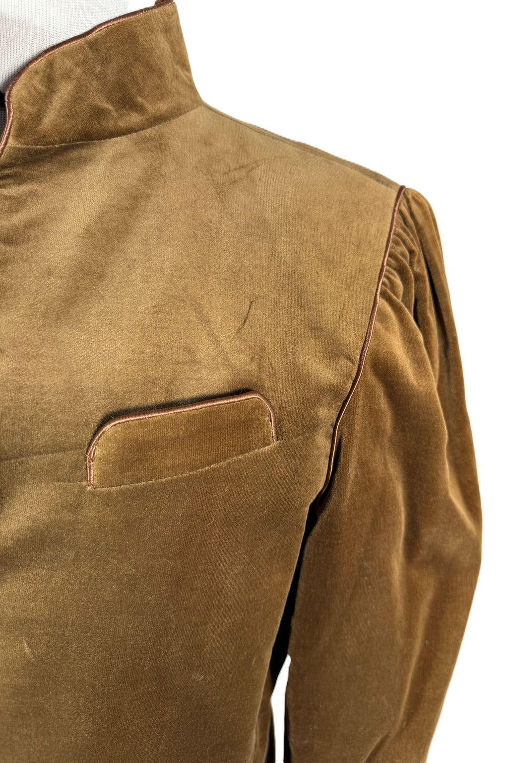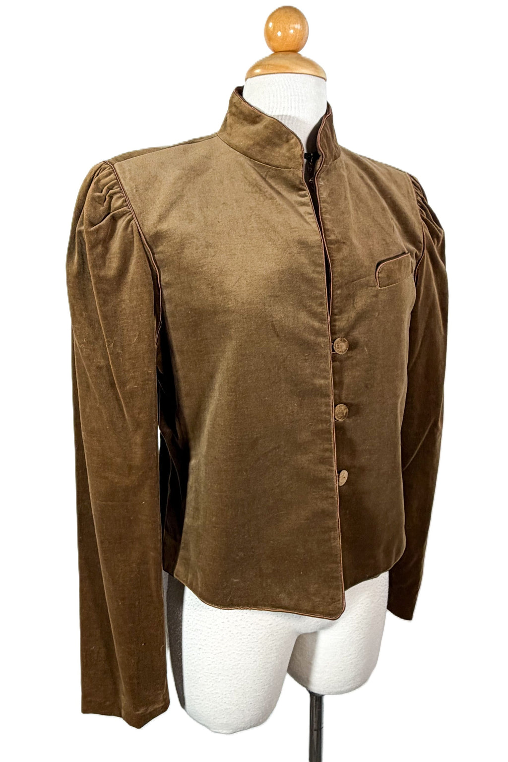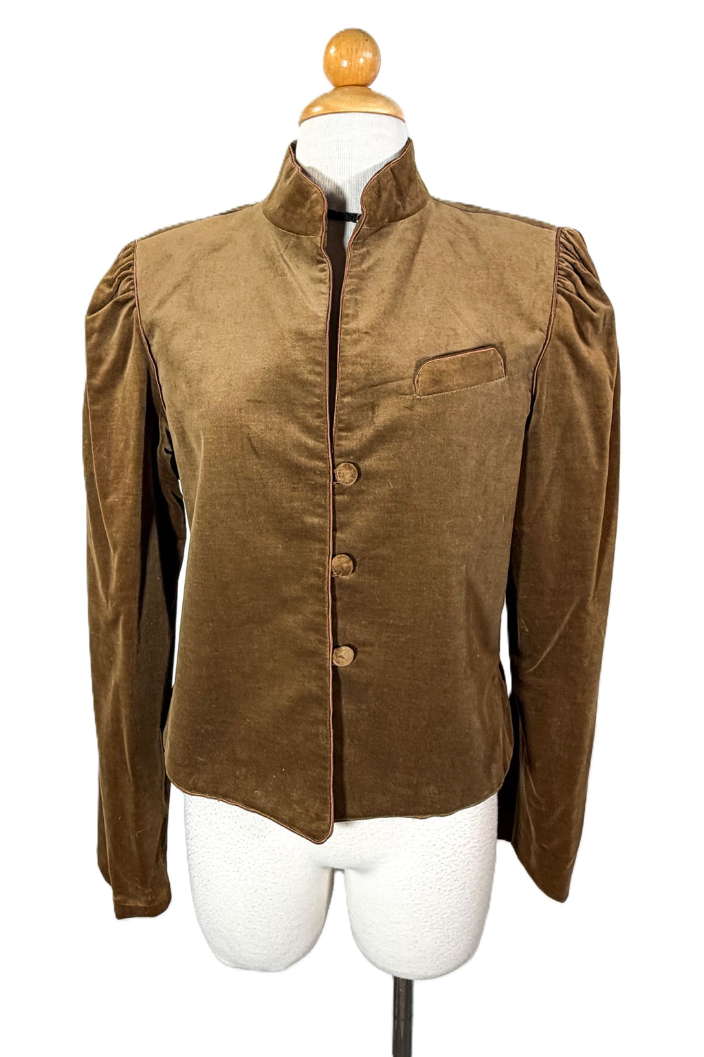 Vintage 80s brown velvet jacket with puff sleeves.