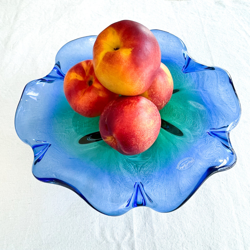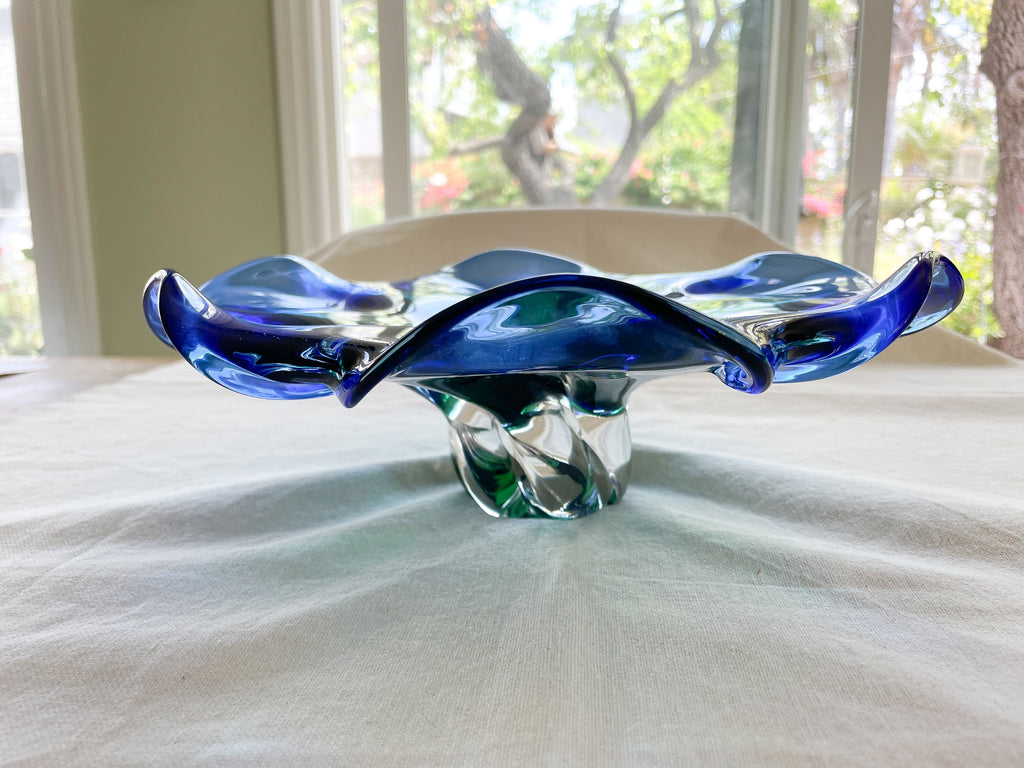 Made in Poland, very heavy handmade glass in 'flower design'.