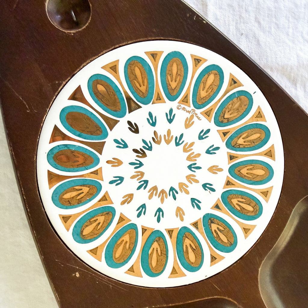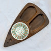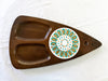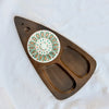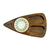 Fred Press design divided wooden tray with a decorative ceramic tile accent.