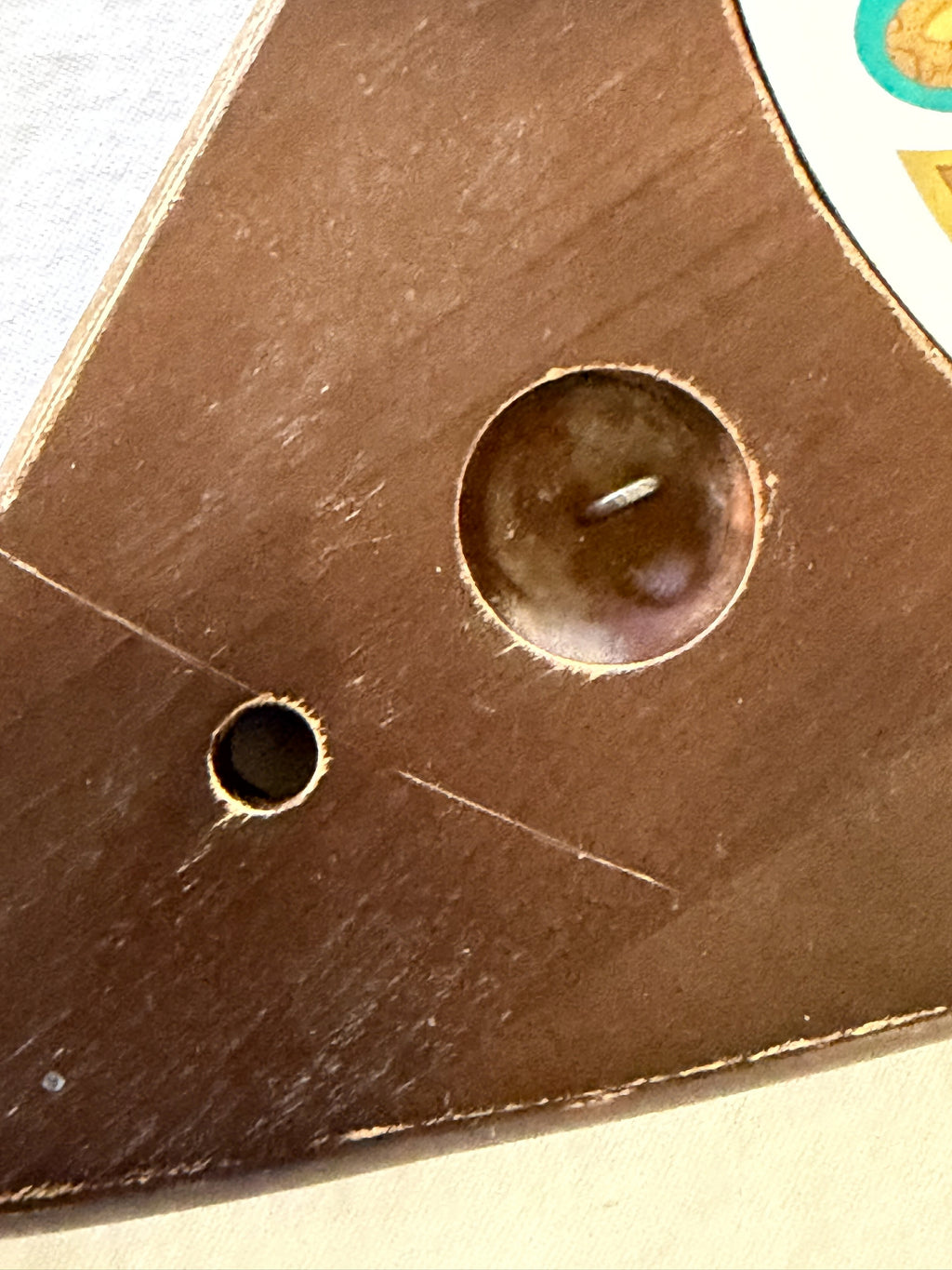 CONDITION: Very good, signs of wear and use. Has been cleaned, wood has been sealed with food-safe butcher block oil. No chips or cracks. There is loss of finish color on the sides of the tray.