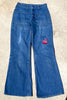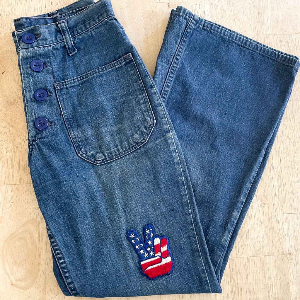 High waist, with waistband bell bottom jeans. ca-1960s/70s
