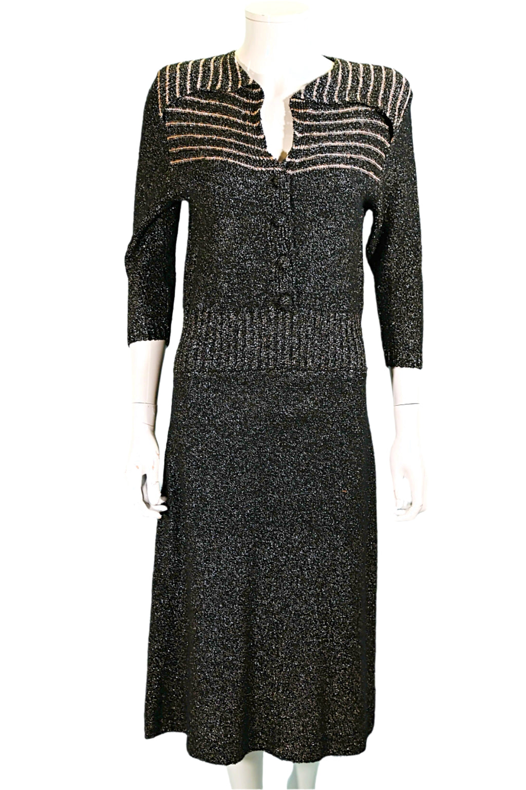 40s/50s boucle knit dress with black & metallic gold threads.