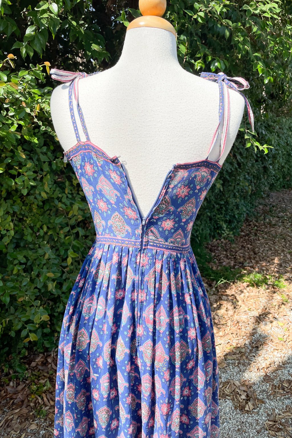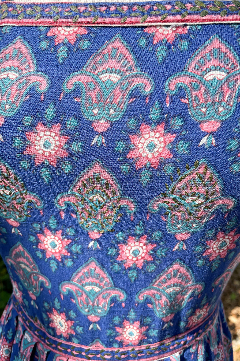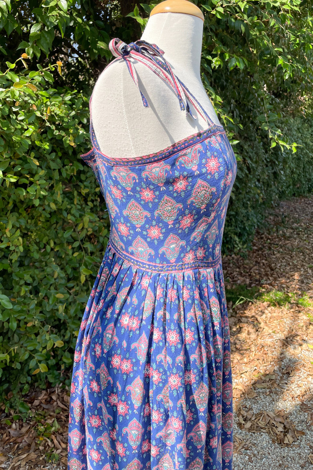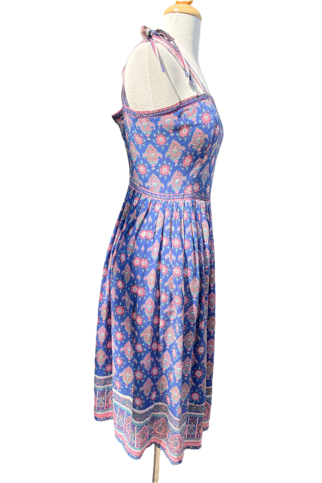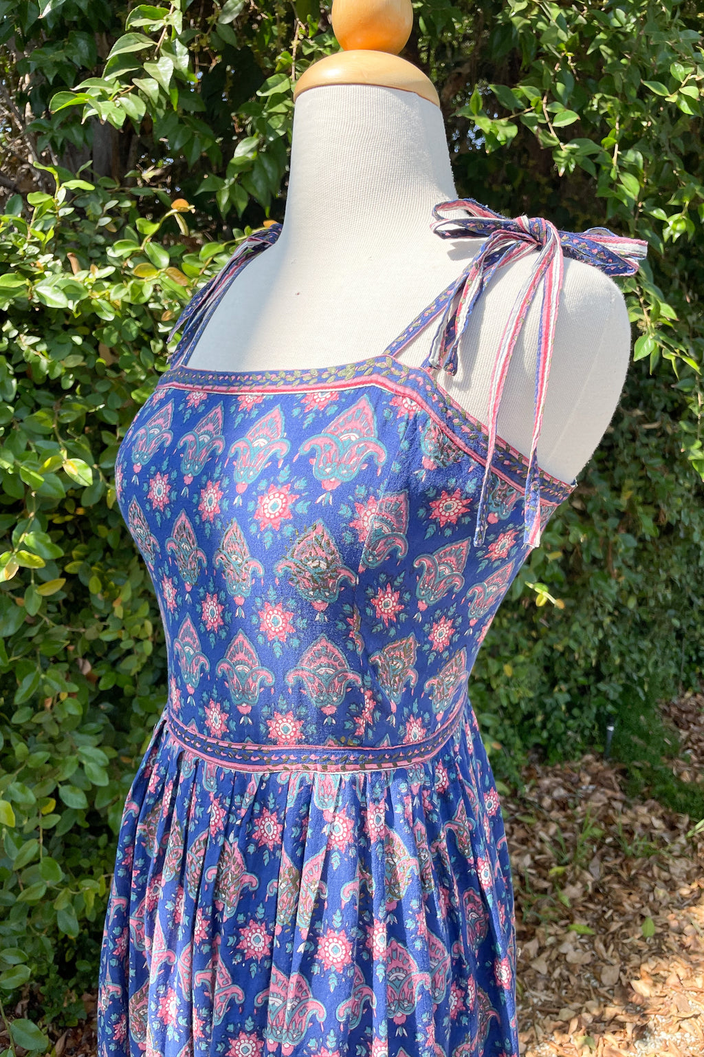 60s Indian block print dress with strappy ties.