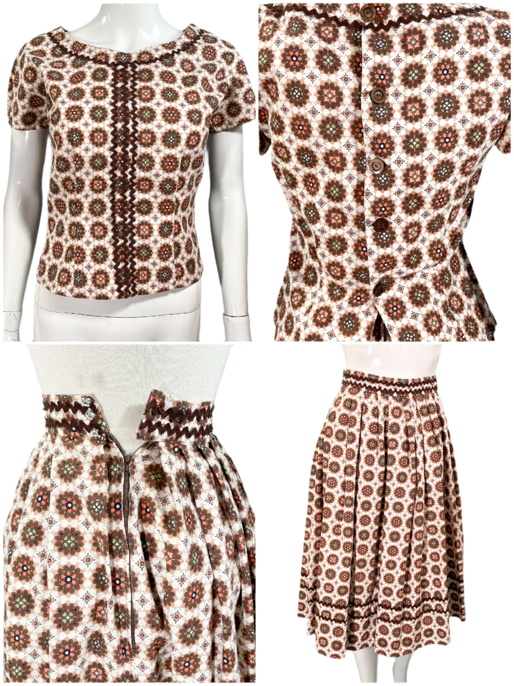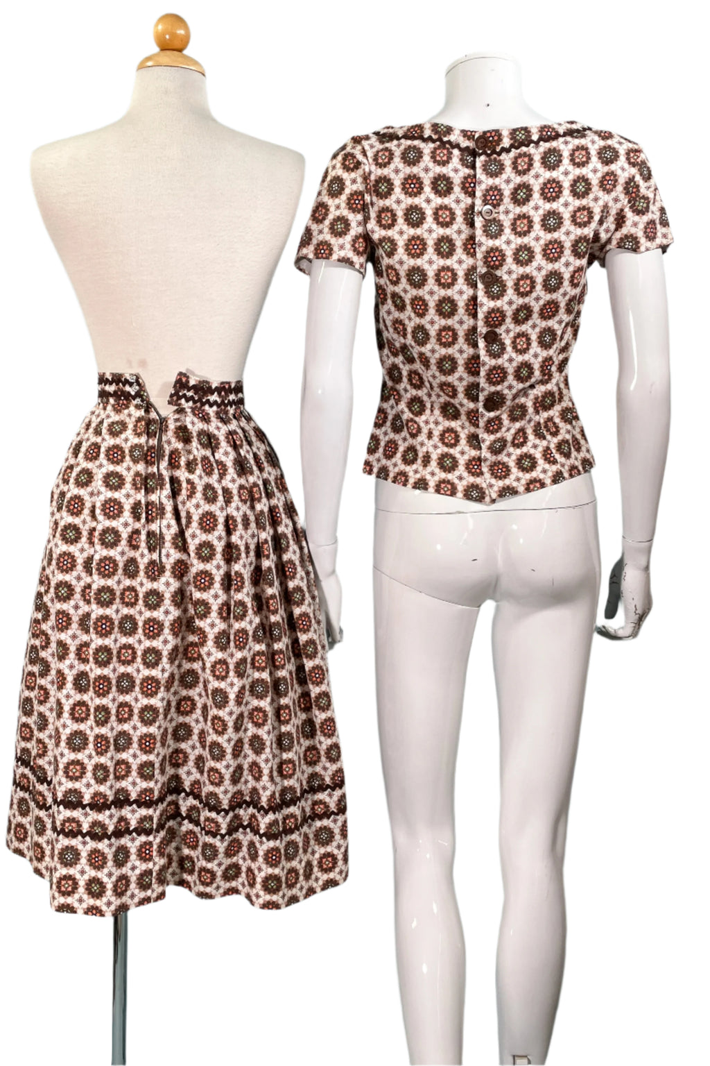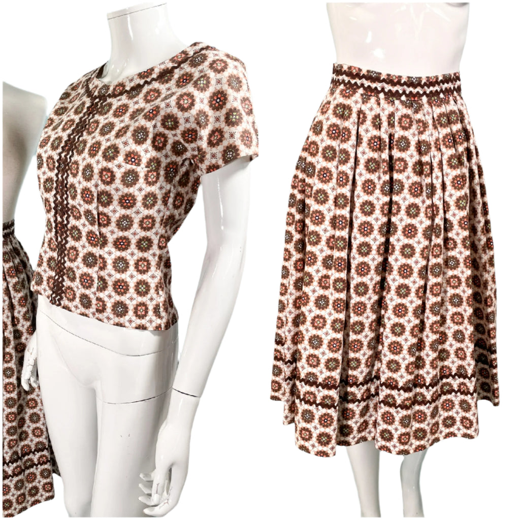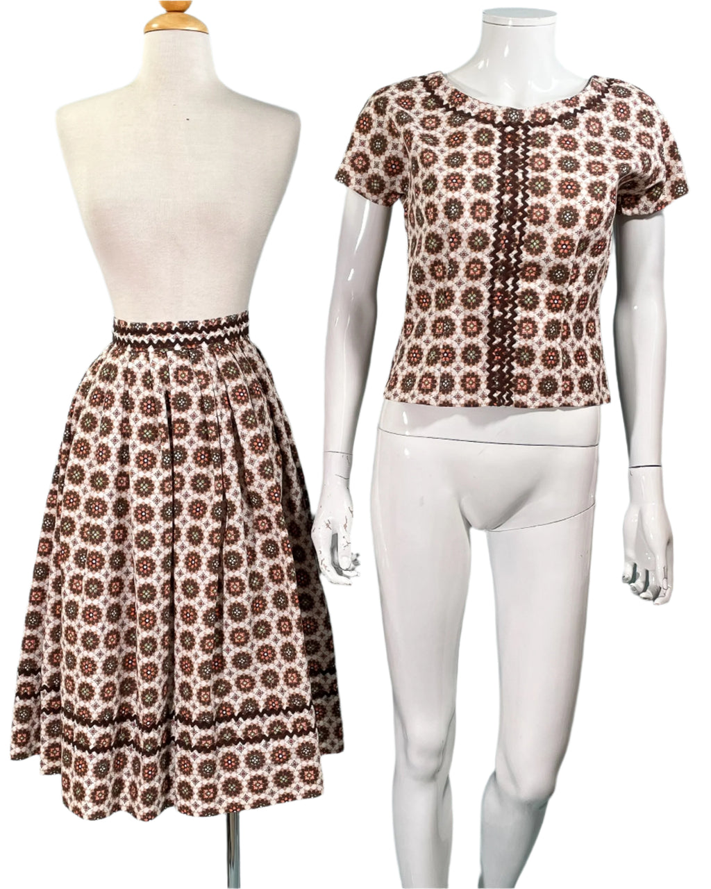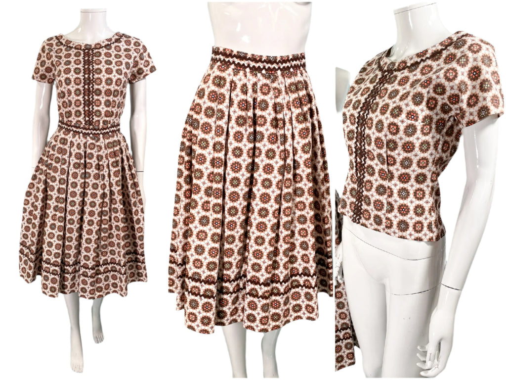 Vintage 1950s novelty print skirt and top, together looks like a dress.