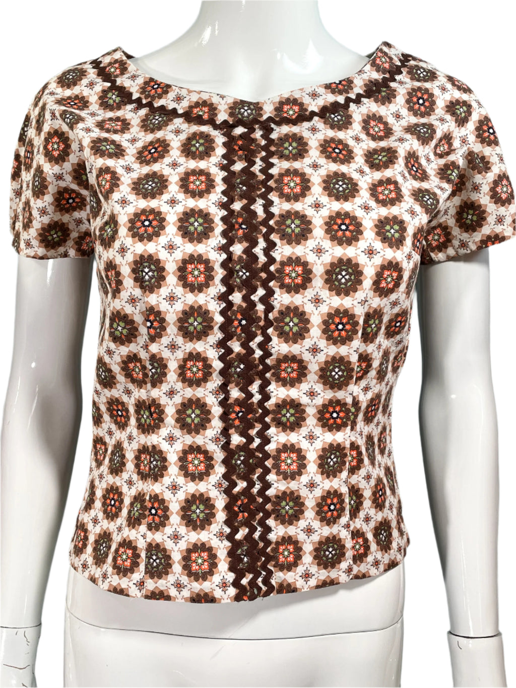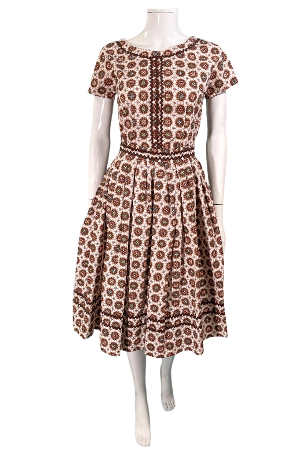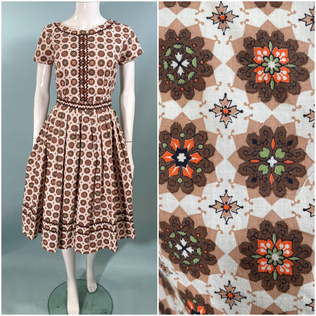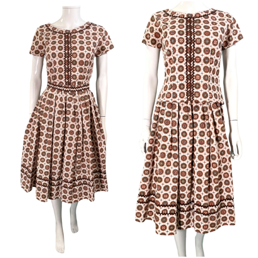 Vintage 1950s novelty print skirt and top, together looks like a dress.