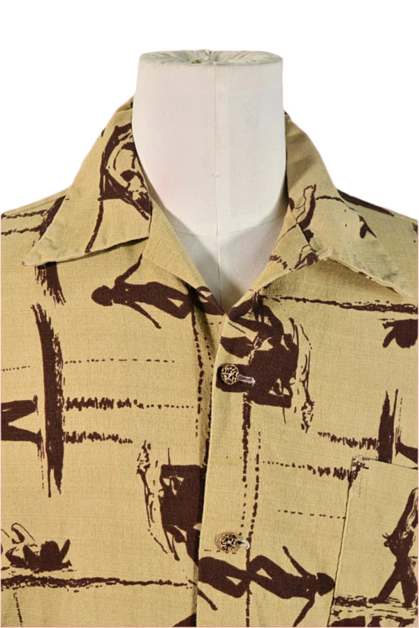 Aloha Vintage 50s Rayon Hawaiian Shirt, Screen Print Made in Japan M