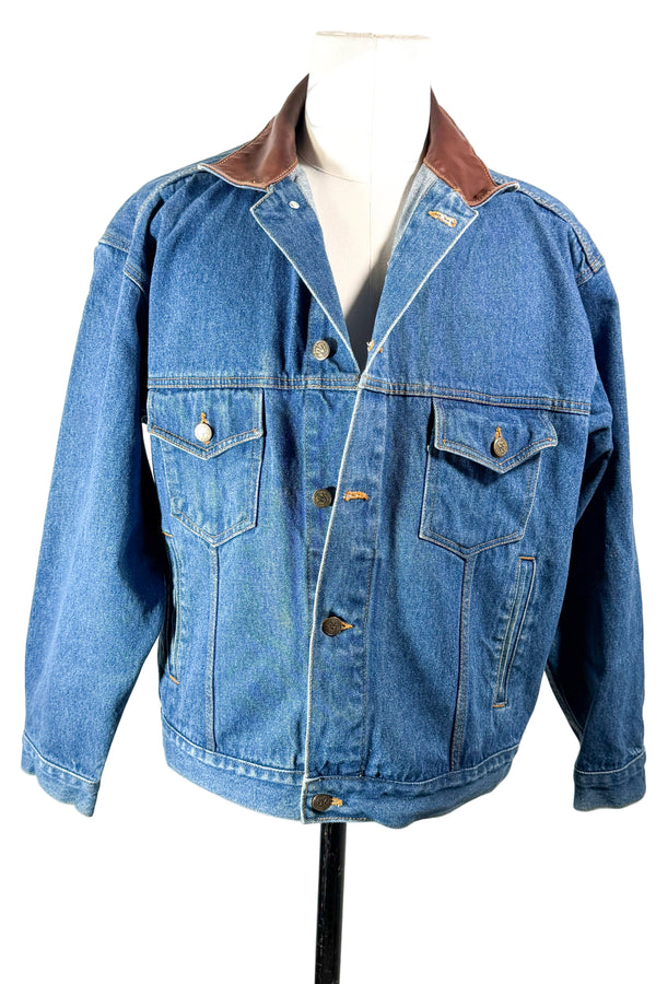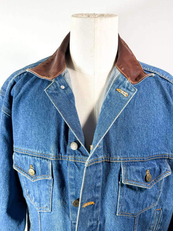 Vintage 90s Marlboro Country Store Denim Jacket, Leather Collar SZ M
